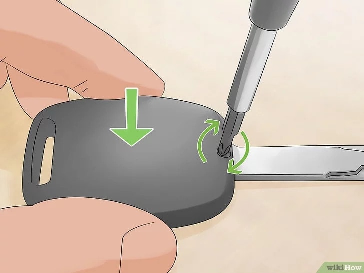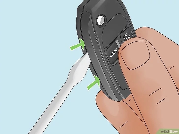 1. Xác định khe nhỏ trên mép chìa khóa, dùng móng tay hoặc tua vít dẹt để mở.